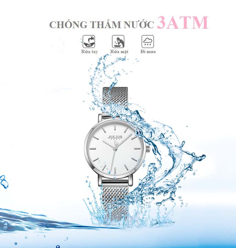 Khả năng chịu nước: Chống thấm nước 3ATM (30m) có thể đi mưa, rửa tay, rửa mặt. Tránh tiếp xúc với môi trường hóa chất như giặt đồ, tấm gội.