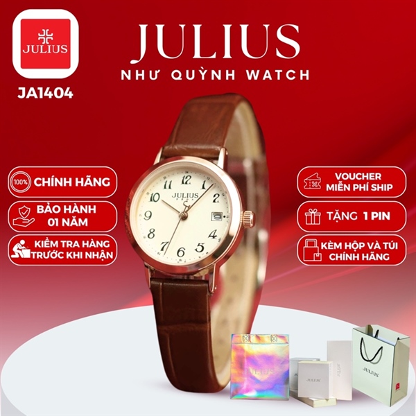 Đồng hồ nữ Julius Hàn Quốc Ja-1404B dây da (Nâu) Mặt size 2,6cm