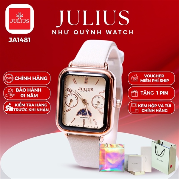 Đồng hồ nữ Julius Hàn Quốc Ja-1481B Mặt size 3,8cmx2,6cm Dây da (Trắng)