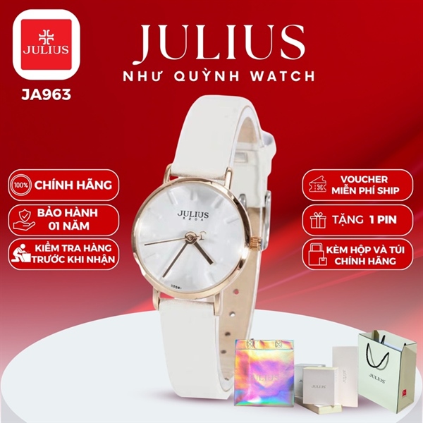 Đồng Hồ Nữ Julius Hàn Quốc JA-963C ju1215 dây da (Trắng) pin 621