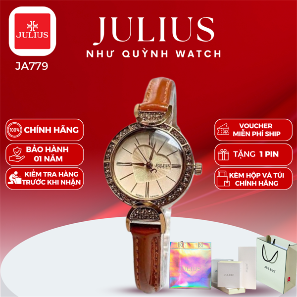 Đồng hồ nữ Julius Ja-779E dây da (Nâu) pin 626