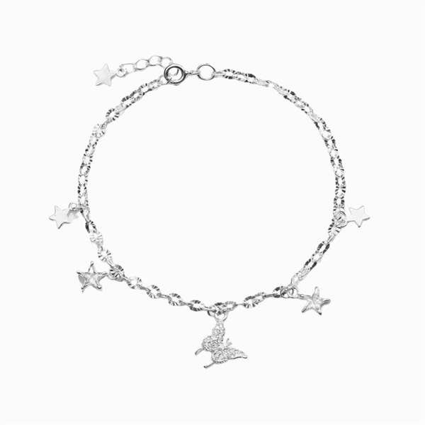 Lắc tay bạc ý 925 nữ dây hoa treo charm hồ điệp ánh sao lấp lánh nữ tính LT0401