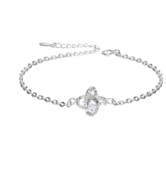 Lắc tay bạc ý 925 nữ l mặt hoa xoáy đính đá nữ tính LT0230