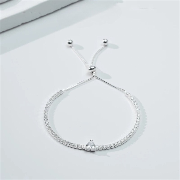 Lắc tay bạc ý 925 nữ , vòng tay đá tim dáng khóa rút xinh xắn LTTIM