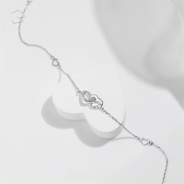 Lắc tay bạc ý 925 nữ , Vòng tay tim lồng mini xinh xắn LTTIMDOI