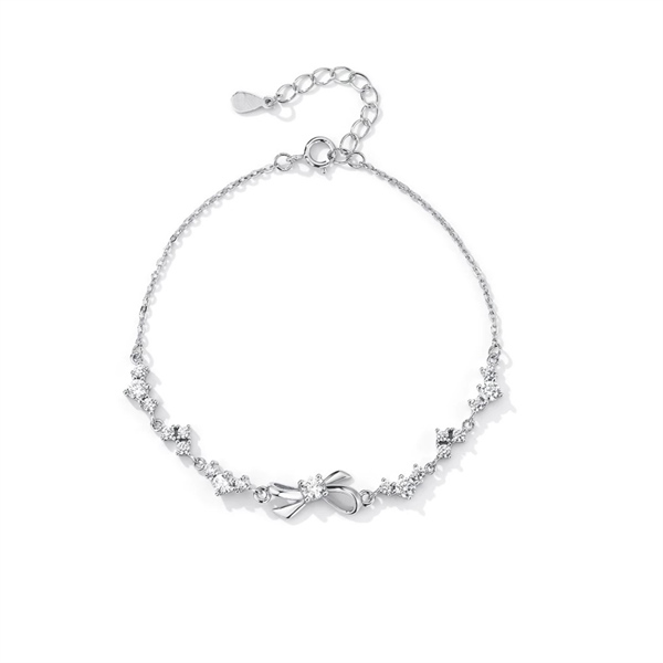 Lắc tay nữ bạc Ý 925 dây dải đá tim kết nối mặt nơ trơn điểm đá sáng nữ tính LT0216