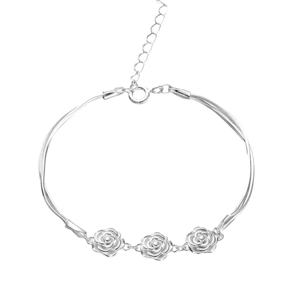 Lắc tay nữ Bạc Ý 925 dây sợi mì tròn mặt chuỗi cánh hoa hồng trơn LTHOAHONG