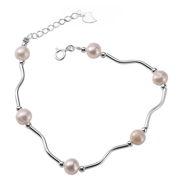 Lắc tay nữ Bạc Ý 925 , vòng tay hạt trai nước ngọt mix ống bạc xoắn nữ tính
