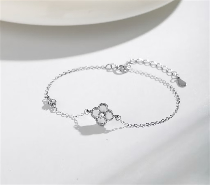 Lắc tay nữ Bạc ý 925 cỏ bốn lá đá mã não phong thủy Tự nhiên viền hạt đính đá nhỏ và charm mắt đá LT0367